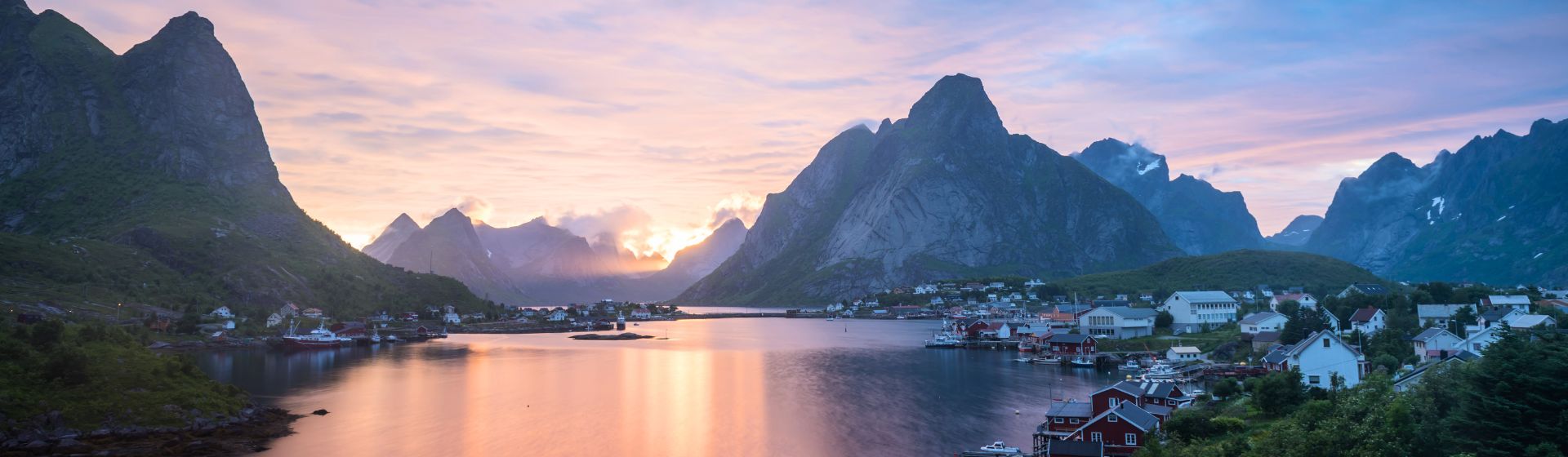 Aux Lofoten, la lumière s’attarde. Jusqu’à tard dans la nuit, les fjords scintillent, les montagnes dorées se reflètent dans une mer presque immobile.
