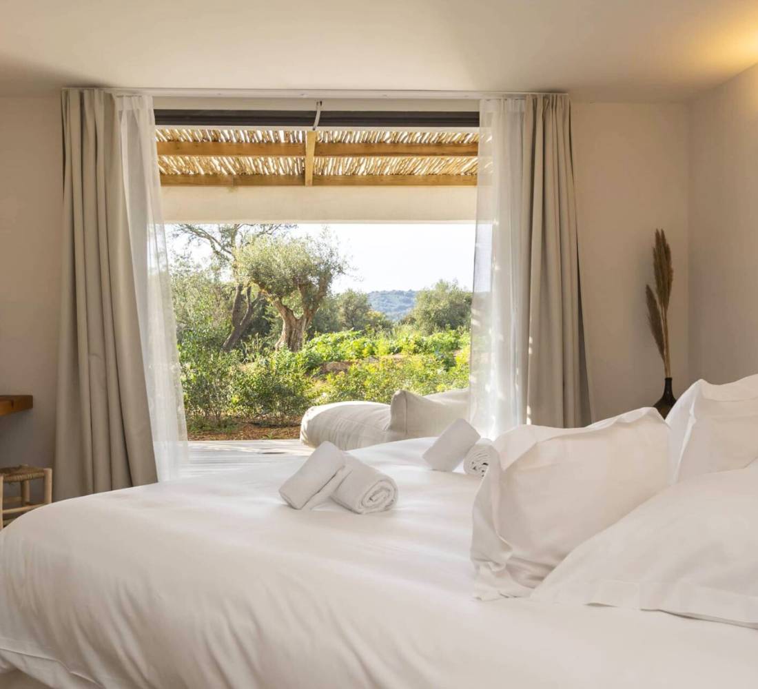 L’hôtel séduit par ses chambres spacieuses et élégamment décorées, certaines avec terrasse privée. Une grande piscine à débordement invite à la détente, entourée par la nature corse.
